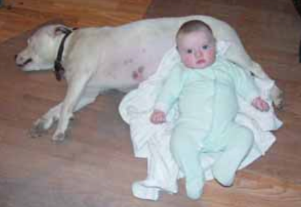 "Sure," said the farmer. And with that he let out a whistle,"Here,Dolly!" he called. Out from the doghouse and down the ramp ran Dolly followed by four little balls of fur. The little boy pressed his face against the chain link fence. His eyes danced with delight.